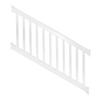 This Harrington 3' High White Vinyl Railing, designed and manufactured by Durables, is available in 4', 6', and 8' wide sections, and in either straight or stairway sections, meaning this extremely popular premium line of railing can be used with a variety of different applications. The traditional look of the Harrington Railing comes from the molded T-Rail top rail and the 1.50" square spindles, designed to make any porch, deck or patio stand out. Each railing section is constructed using only the high-quality vinyl, with built-in top rail aluminum inserts, ensuring superior strength and lifetime use.